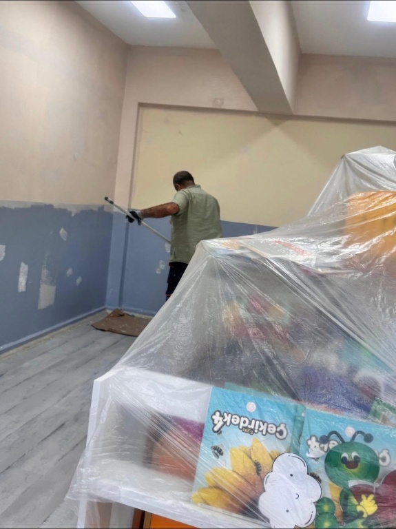 2025-2026 Eğitim Öğretim Yılı hazırlık çalışmaları kapsamında iç cephe boyası, dış duvar boyası ve tadilat çalışmaları tamamlandı.